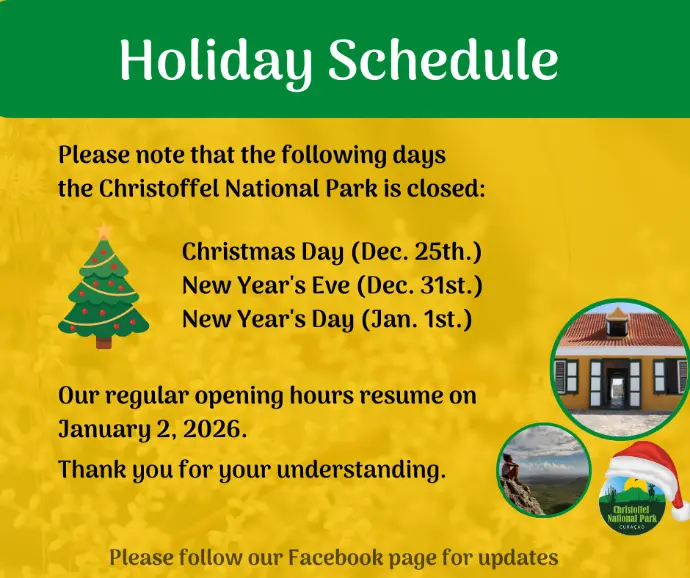 The largest and most biodiverse park on the island! In the park you can find stunning nature, the Christoffel Mountain, beautiful birds, the national white tailed deer and wonderful hiking trails. We offer tours, guided hikes, and seasonal activities. Inside the park you can find the Savonet Museum.